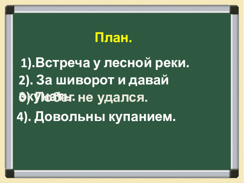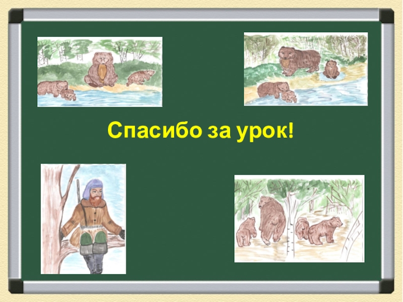 12 Оч…тившись снова на з…мле, оба медвежонка остались очень довольны купанием: день был знойный, и им было очень жарко в густых, лохматых шу…ках. 13 В…да хорошо осв…жила их. 14 После купания медведи опять скрылись в л…су, а …хотник сле… с дер…ва и пошёл д…мой.