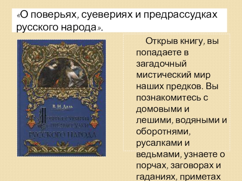 Слайд 14«О поверьях, суевериях и предрассудках русского народа».