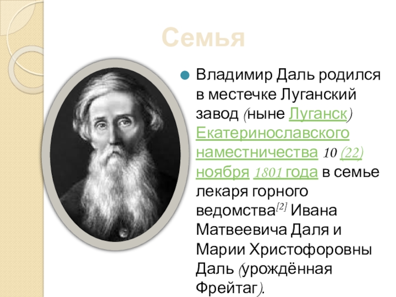 Влади́мир Ива́нович Даль (10 ноября 1801 — 22 сентября