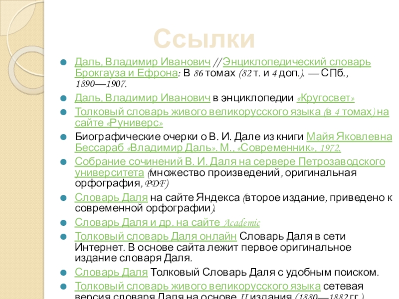 Даль, Владимир Иванович // Энциклопедический словарь Брокгауза и Ефрона: В 86