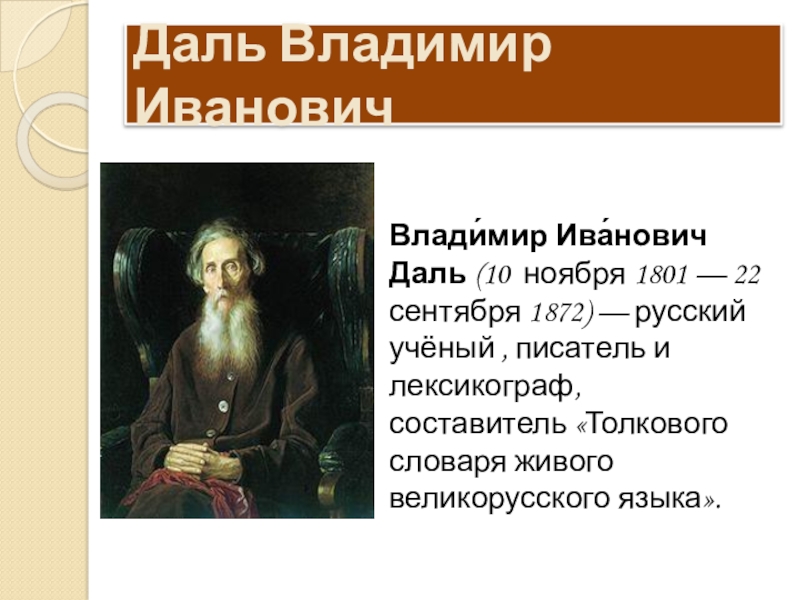 1872) — русский учёный , писатель и лексикограф, составитель «Толкового словаря живого великорусского языка».