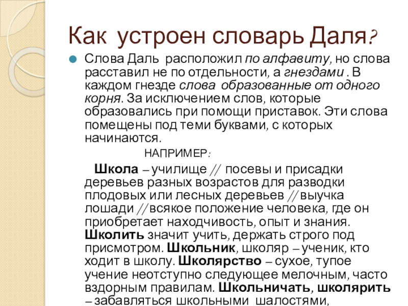 Толковый словарь Даля онлайн Словарь Даля в сети Интернет. В основе сайта лежит первое оригинальное издание словаря Даля.
