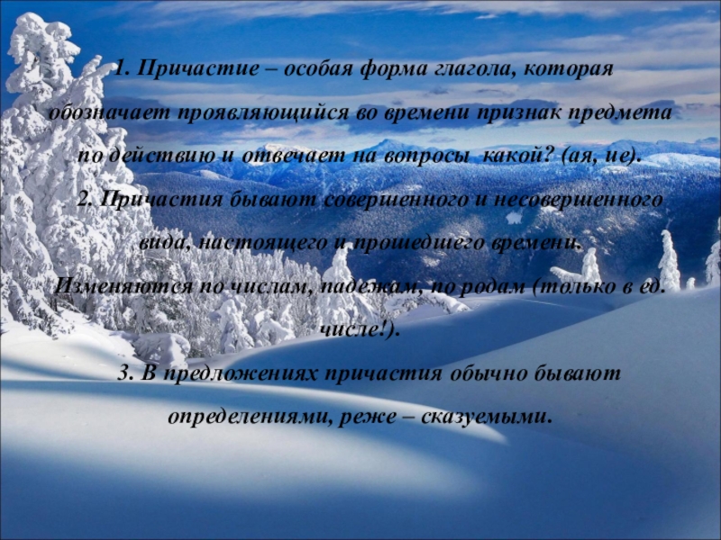 1. Причастие – особая форма глагола, которая обозначает проявляющийся во