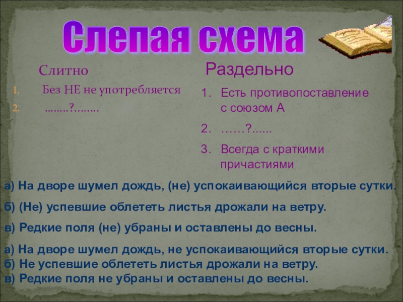 а) На дворе шумел дождь, (не) успокаивающийся вторые сутки.