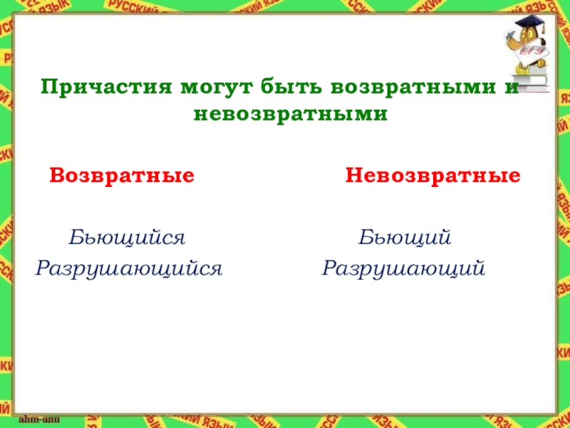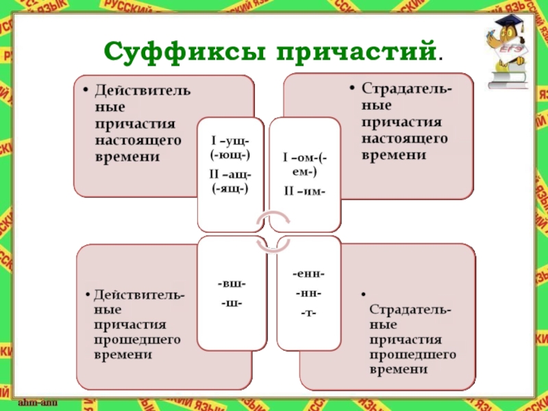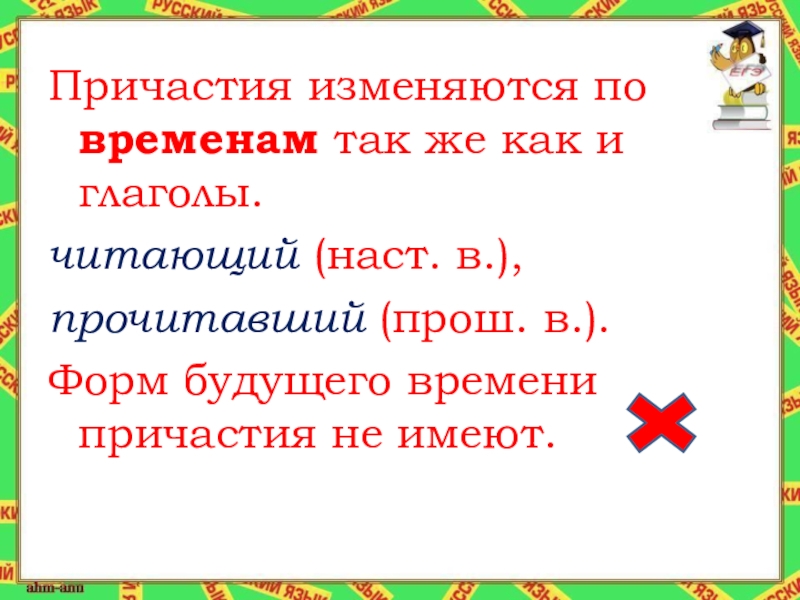 Слайд 10Причастия изменяются по временам так же как и глаголы.