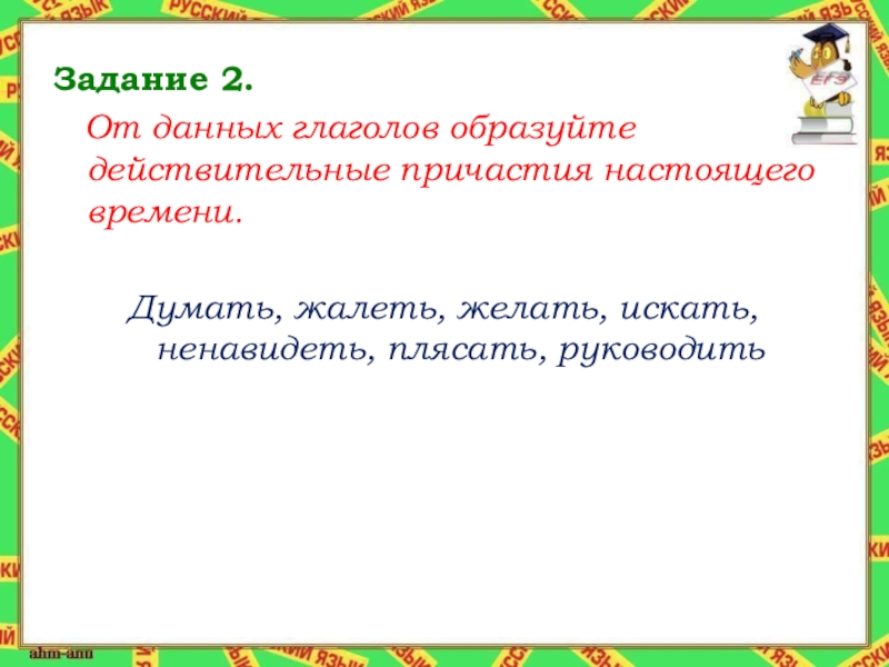 От данных глаголов образуйте действительные причастия настоящего времени.