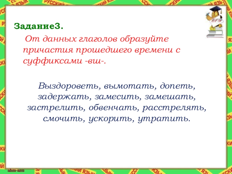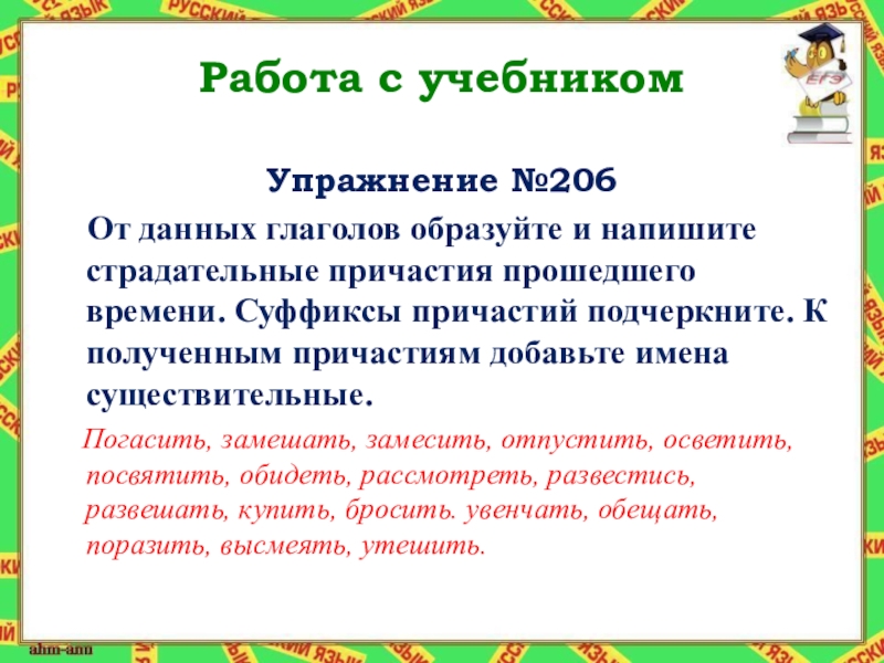 страдательные причастия прошедшего времени. Суффиксы причастий подчеркните. К полученным причастиям добавьте имена существительные.