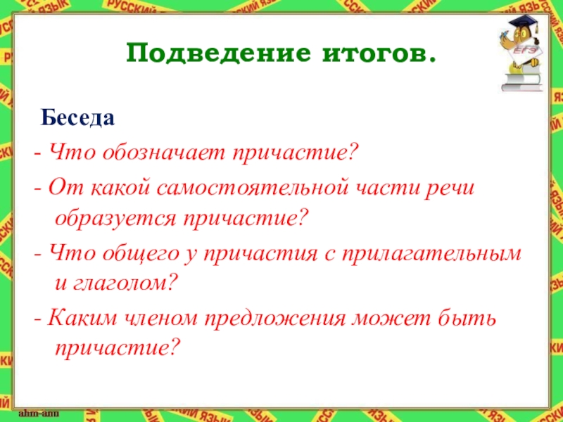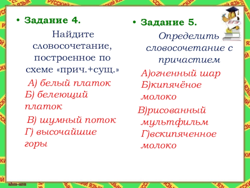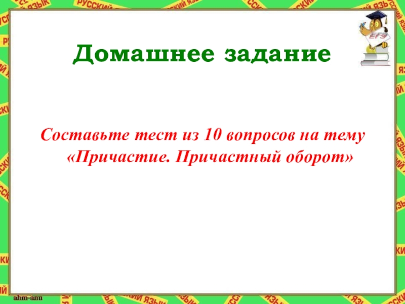 Составьте тест из 10 вопросов на тему «Причастие. Причастный оборот»