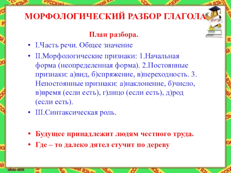 Слайд 5МОРФОЛОГИЧЕСКИЙ РАЗБОР ГЛАГОЛА