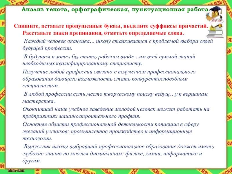 Слайд 23Анализ текста, орфографическая, пунктуационная работа.