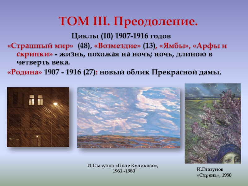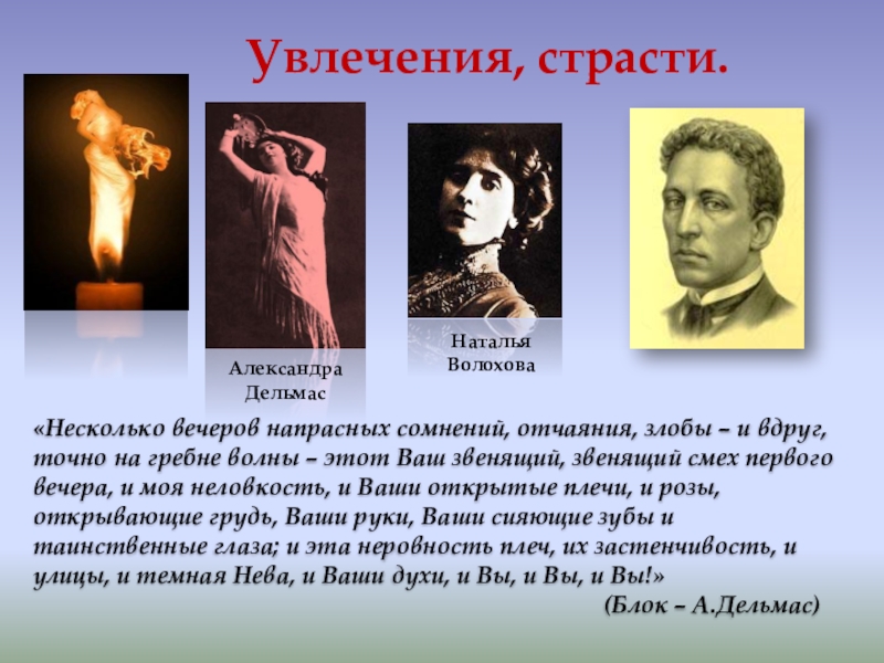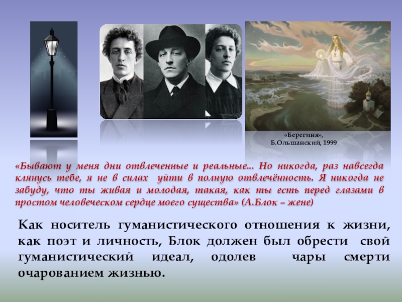 Как носитель гуманистического отношения к жизни, как поэт и личность, Блок должен был обрести свой гуманистический идеал, одолев чары смерти очарованием жизнью.