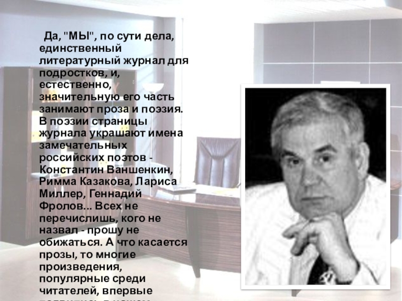 "МЫ" - необычное, или, точнее, непривычное название для журнала – это и ответ на вопрос, для кого и для чего он создан, к кому обращены страницы литературных произведений и материалы разнообразных рубрик.