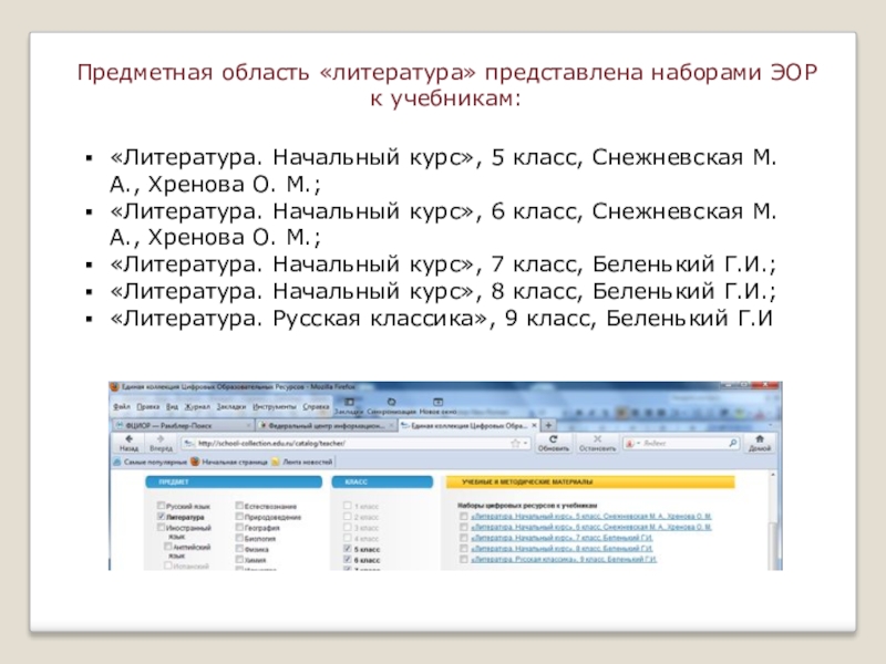 Слайд 7Предметная область «литература» представлена наборами ЭОР к учебникам: