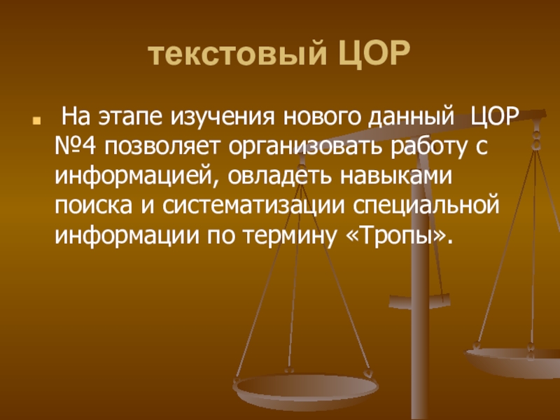 работу с информацией, овладеть навыками поиска и систематизации специальной информации по термину «Тропы».