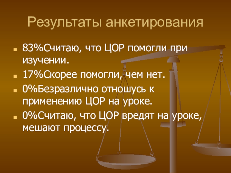 0%Считаю, что ЦОР вредят на уроке, мешают процессу.