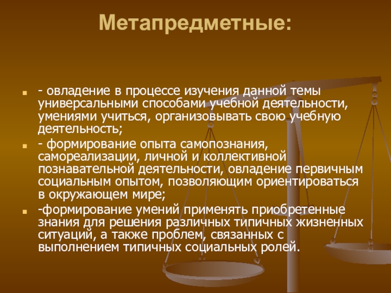 - овладение в процессе изучения данной темы универсальными способами учебной