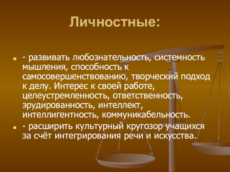 - развивать любознательность, системность мышления, способность к самосовершенствованию, творческий подход к