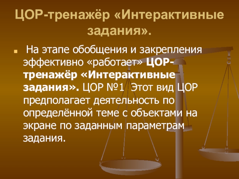 Слайд 8ЦОР-тренажёр «Интерактивные задания».