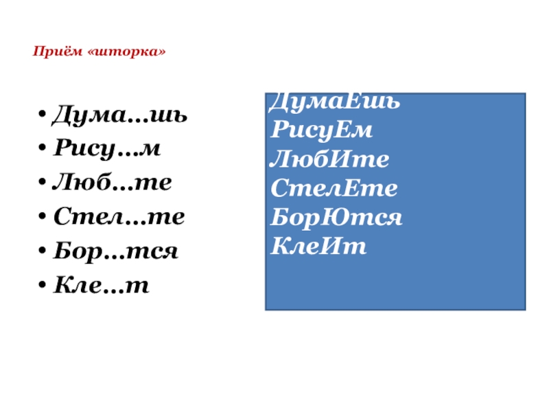Приём «шторка»Дума…шьРису…мЛюб…теСтел…теБор…тсяКле…тДумаЕшьРисуЕмЛюбИтеСтелЕтеБорЮтсяКлеИт