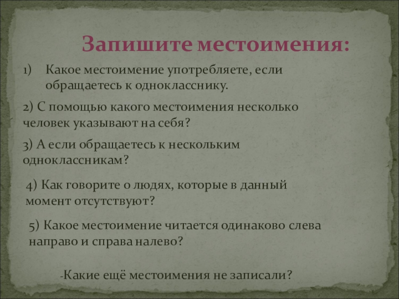 -Какие ещё местоимения не записали?