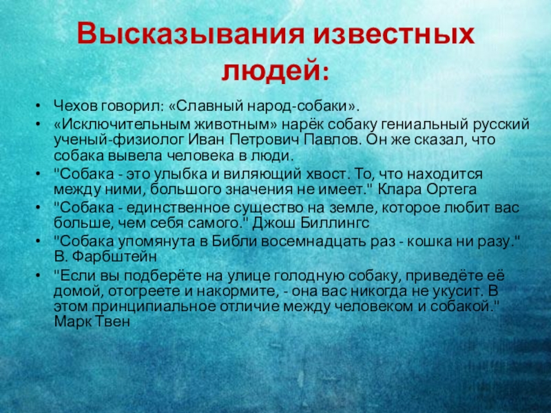 "Собака упомянута в Библи восемнадцать раз - кошка ни разу." В. Фарбштейн
