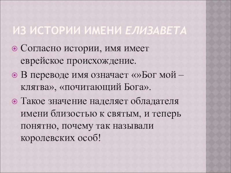 Слайд 15ИЗ ИСТОРИИ ИМЕНИ ЕЛИЗАВЕТА