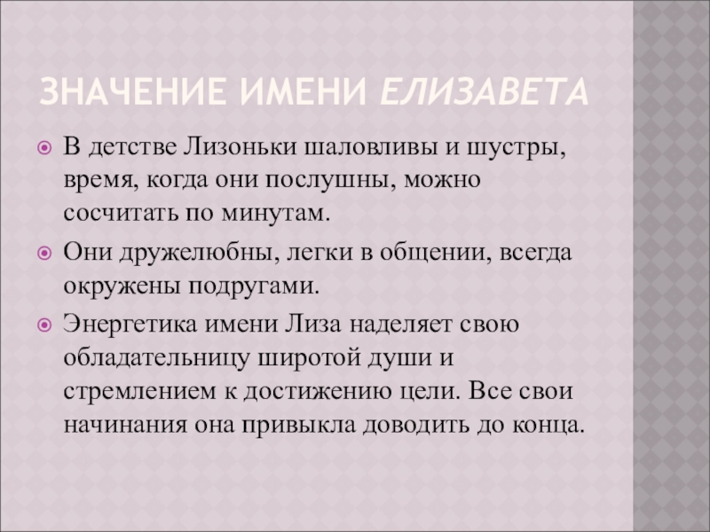 Слайд 16ЗНАЧЕНИЕ ИМЕНИ ЕЛИЗАВЕТА