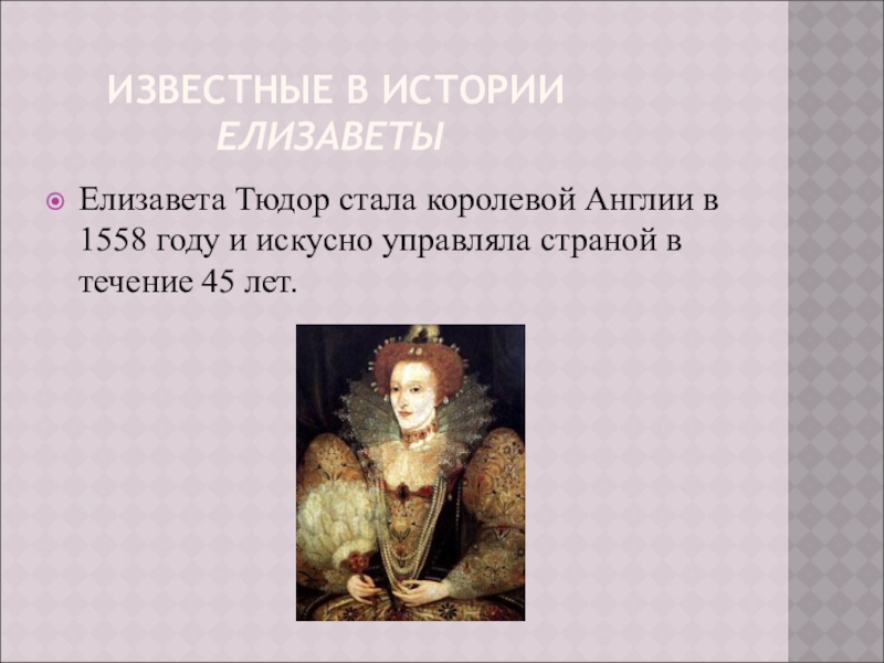Слайд 17 ИЗВЕСТНЫЕ В ИСТОРИИ ЕЛИЗАВЕТЫ