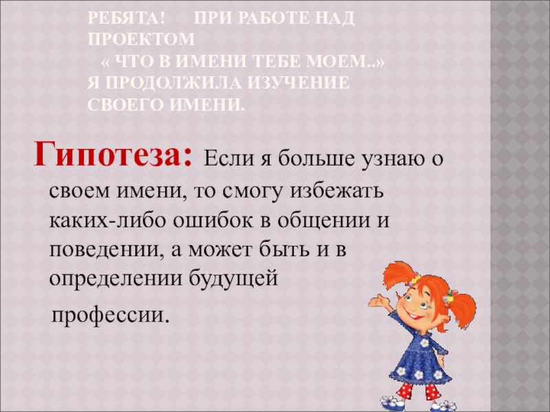 Гипотеза: Если я больше узнаю о своем имени, то смогу избежать каких-либо ошибок в общении и поведении, а может быть и в определении будущей