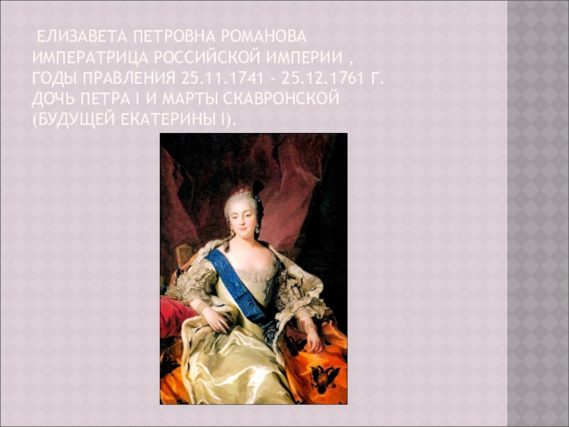 ИМПЕРАТРИЦА РОССИЙСКОЙ ИМПЕРИИ , ГОДЫ ПРАВЛЕНИЯ 25.11.1741