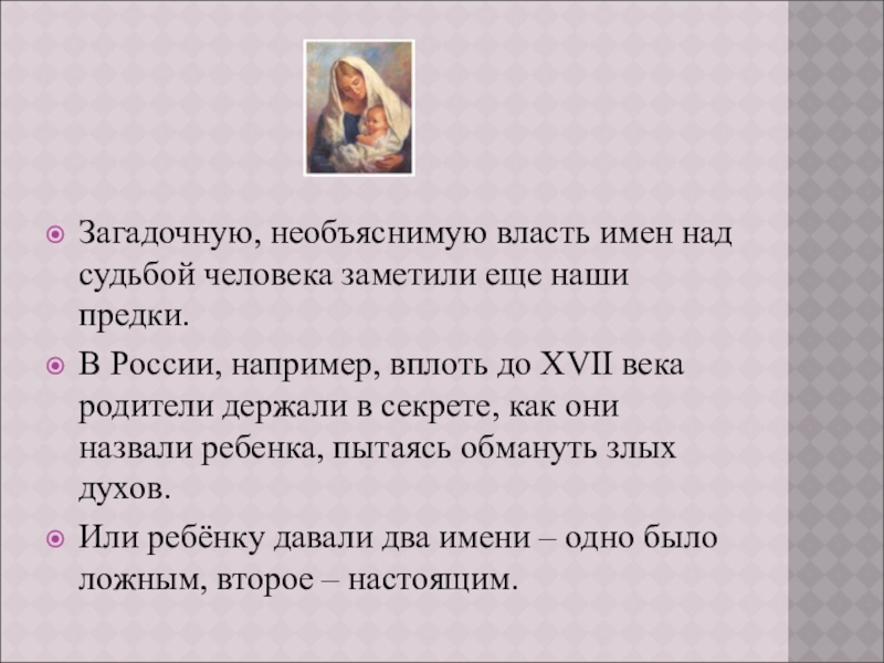 Слайд 6Загадочную, необъяснимую власть имен над судьбой человека заметили еще наши предки.