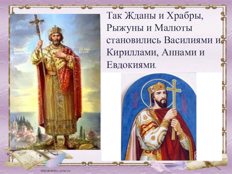Слайд 17Так Жданы и Храбры, Рыжуны и Малюты становились Василиями и Кириллами,