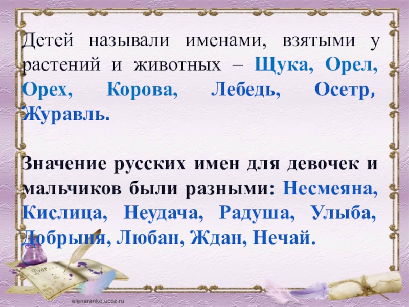 Слайд 9Детей называли именами, взятыми у растений и животных – Щука, Орел,