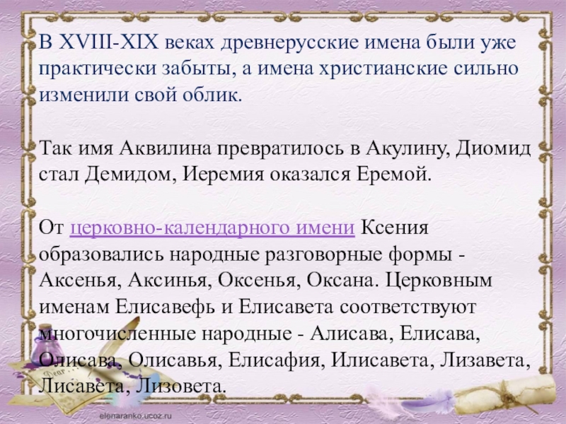 Слайд 18В XVIII-XIX веках древнерусские имена были уже практически забыты, а имена