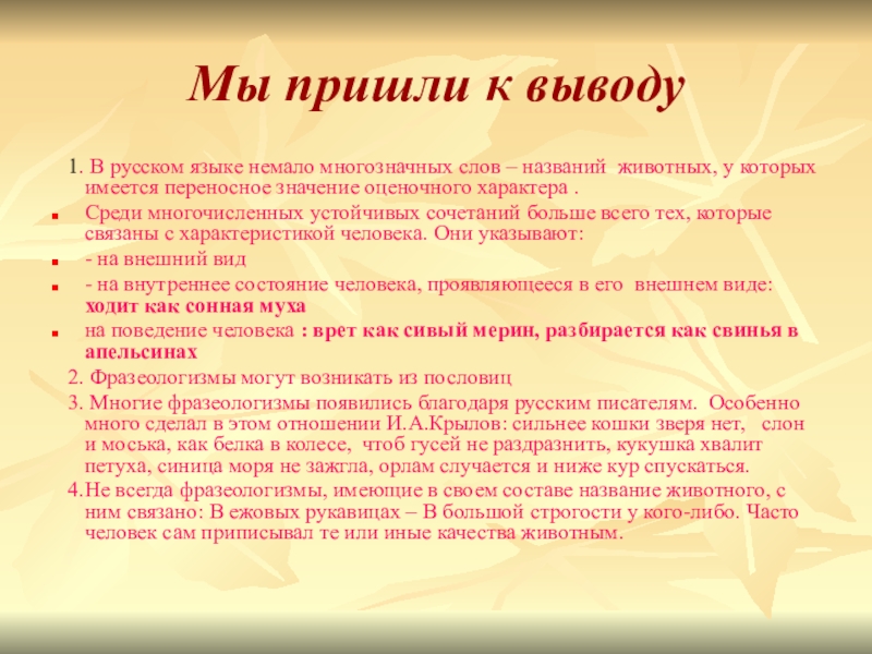 4.Не всегда фразеологизмы, имеющие в своем составе название животного, с ним связано: В ежовых рукавицах – В большой строгости у кого-либо. Часто человек сам приписывал те или иные качества животным.