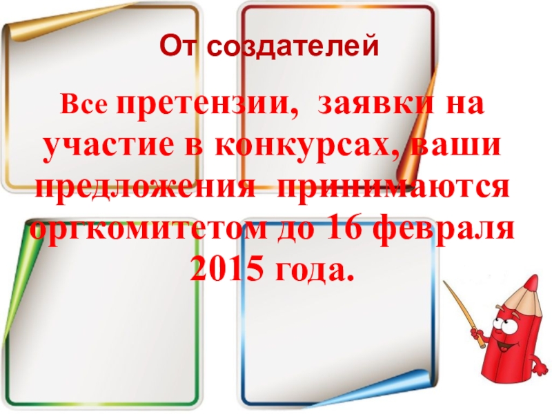 Это сайт презентаций, где можно хранить и обмениваться своими презентациями, докладами, проектами, шаблонами в формате PowerPoint с другими пользователями. Мы помогаем школьникам, студентам, учителям, преподавателям хранить и обмениваться учебными материалами.