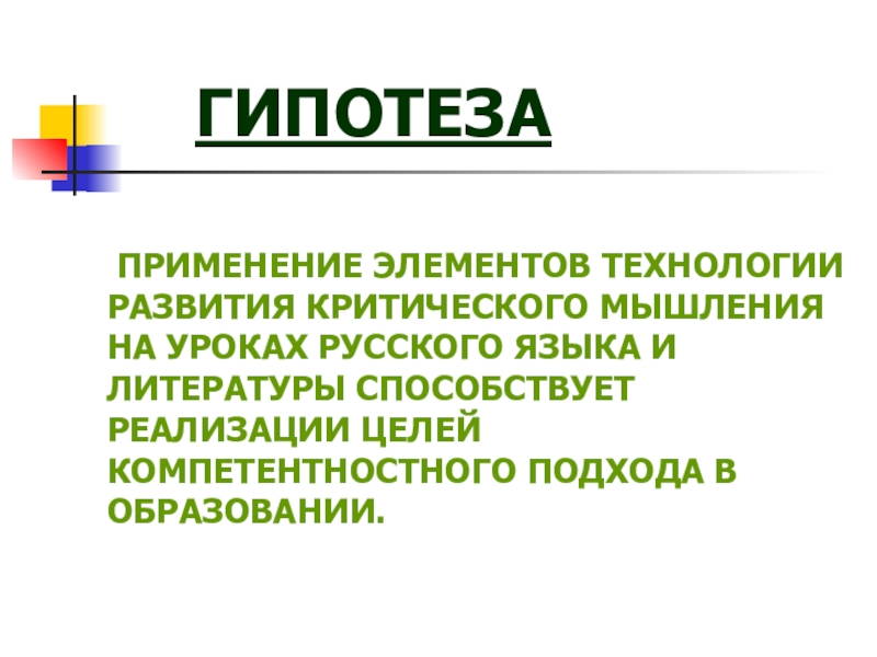 ГИПОТЕЗА О ТОМ, ЧТО ПРИМЕНЕНИЕ ЭЛЕМЕНТОВ ТЕХНОЛОГИИ РАЗВИТИЯ КРИТИЧЕСКОГО