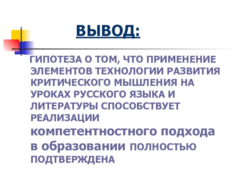 МЫШЛЕНИЯ НА УРОКАХ РУССКОГО ЯЗЫКА И ЛИТЕРАТУРЫ СПОСОБСТВУЕТ РЕАЛИЗАЦИИ компетентностного подхода в образовании ПОЛНОСТЬЮ ПОДТВЕРЖДЕНА