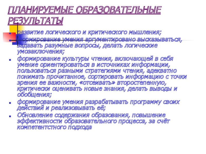 Слайд 13ПЛАНИРУЕМЫЕ ОБРАЗОВАТЕЛЬНЫЕ РЕЗУЛЬТАТЫ