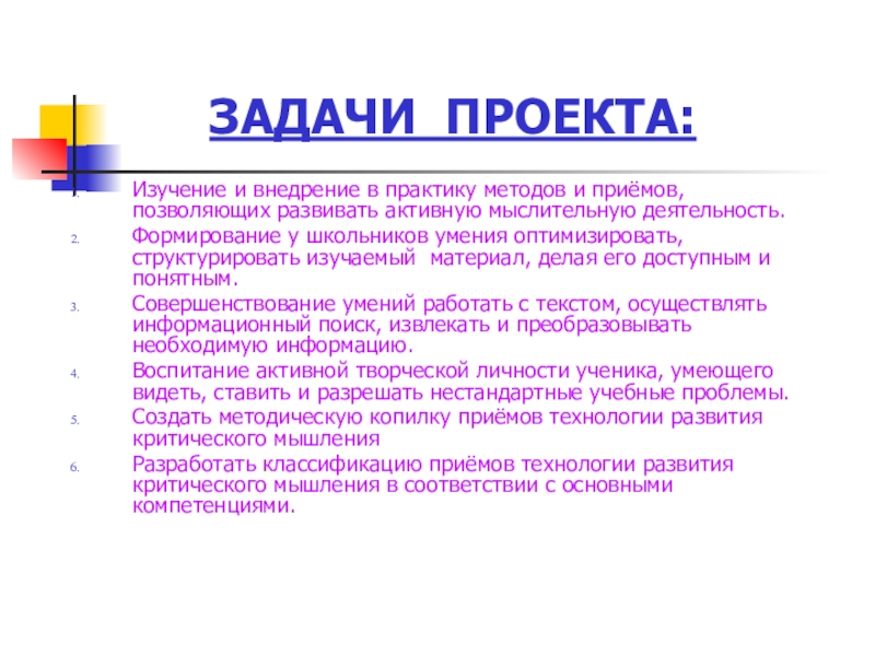 Слайд 5 ЗАДАЧИ ПРОЕКТА: