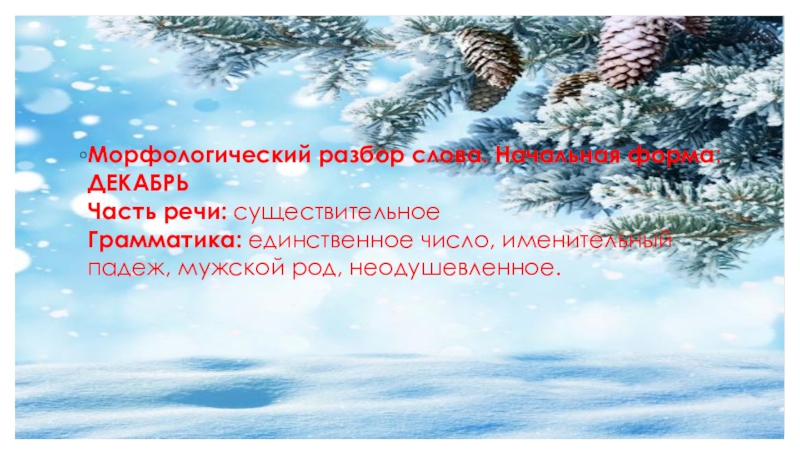 Слайд 14Морфологический разбор слова. Начальная форма: ДЕКАБРЬ