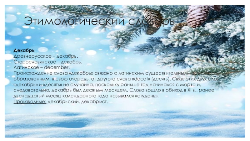 Слайд 12Слово «декабрь» со стороны русского языка.