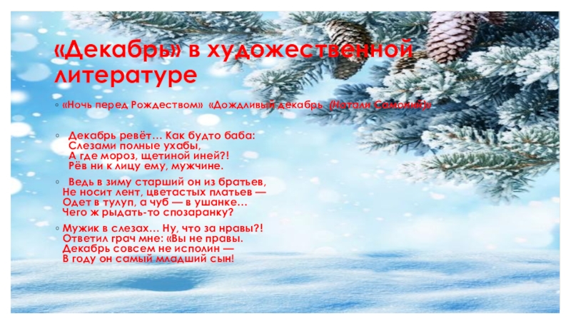 Декабрь – первый месяц зимы, последний в году. В простонародье он