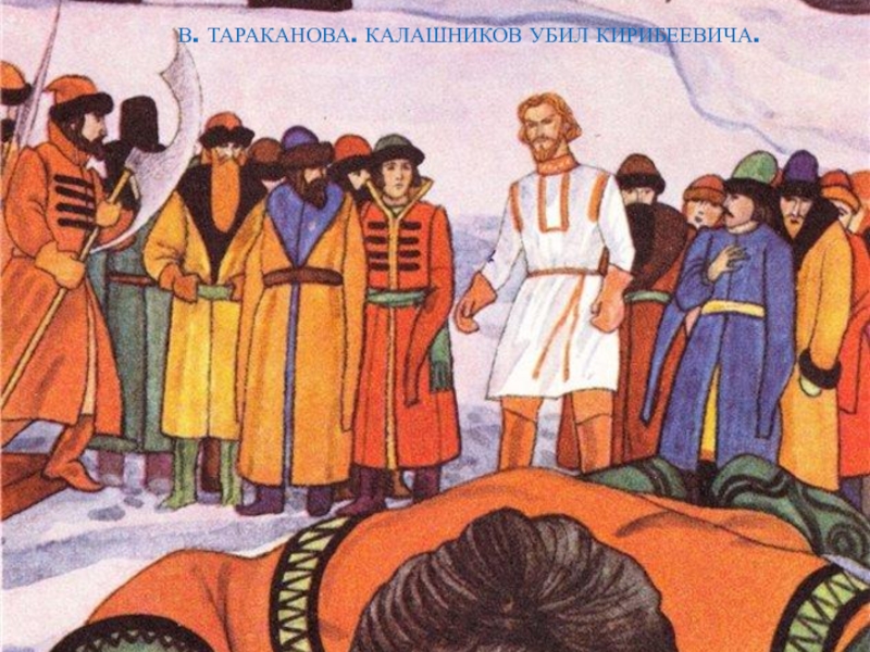Слайд 18В. Тараканова. Калашников убил кирибеевича.