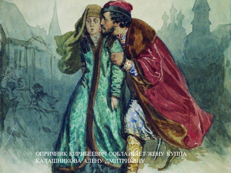 Слайд 10Опричник кирибеевич соблазняет жену купца Калашникова алену дмитриевну
