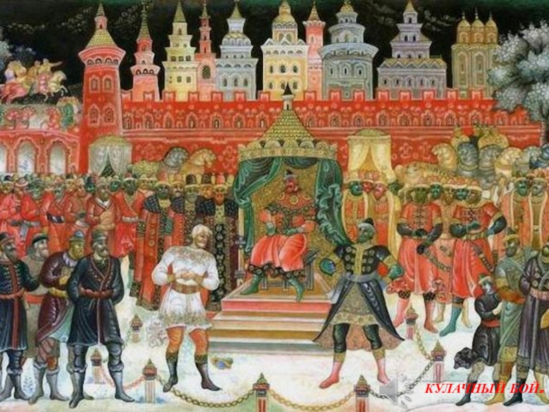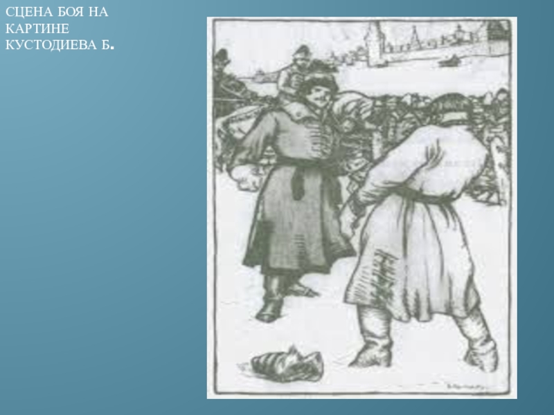 Слайд 17Сцена боя на картине Кустодиева Б.