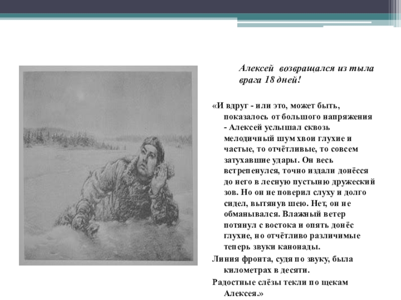 Слайд 10Алексей возвращался из тыла врага 18 дней!