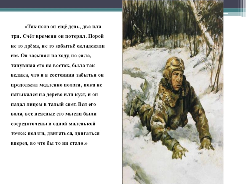 Слайд 9 «Так полз он ещё день, два или три. Счёт времени