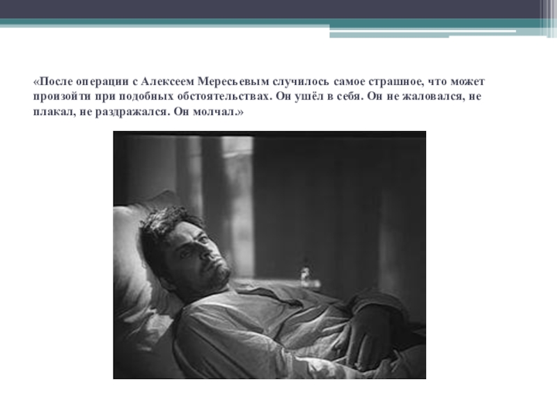 Слайд 14«После операции с Алексеем Мересьевым случилось самое страшное, что может произойти