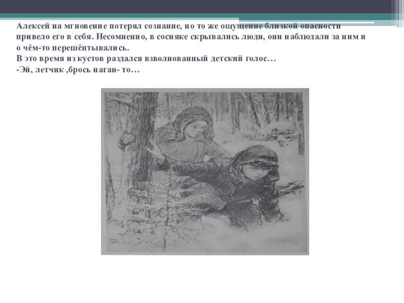 Слайд 11Алексей на мгновение потерял сознание, но то же ощущение близкой опасности